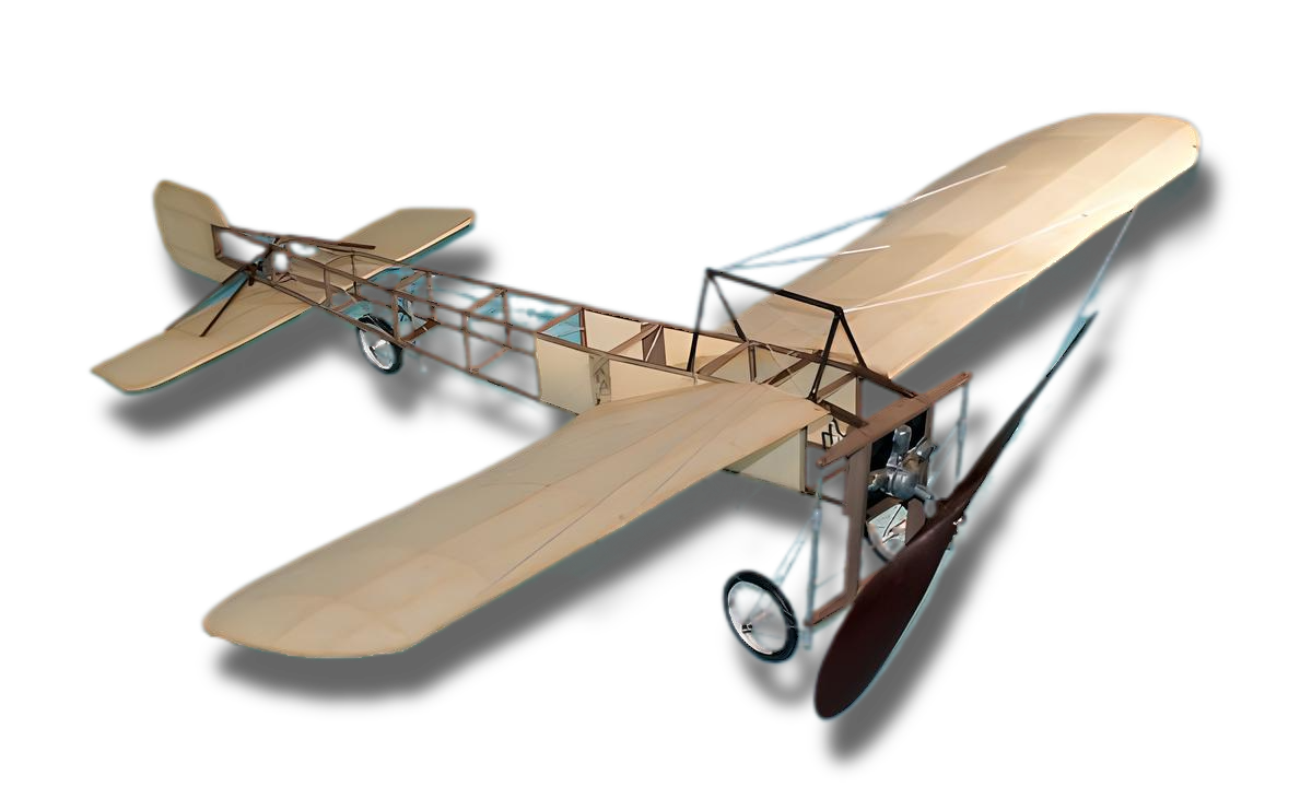 The Bleriot X1 kit is a 1:20 scale rubber powered flying model of the French pioneer aircraft. This kit is eligible for Flying Aces Club S.L.O.W. contests and SCALE competitions. Weight of prototype, 15.6 grams without rubber motor; add 1.5 grams for 1/8" x 19" rubber motor.