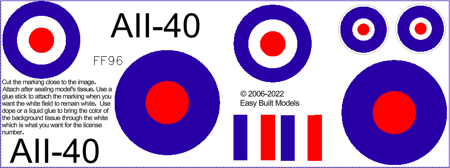 TissueCal™ markings for kit FF96. Markings are printed on white Easy Built Lite tissue.