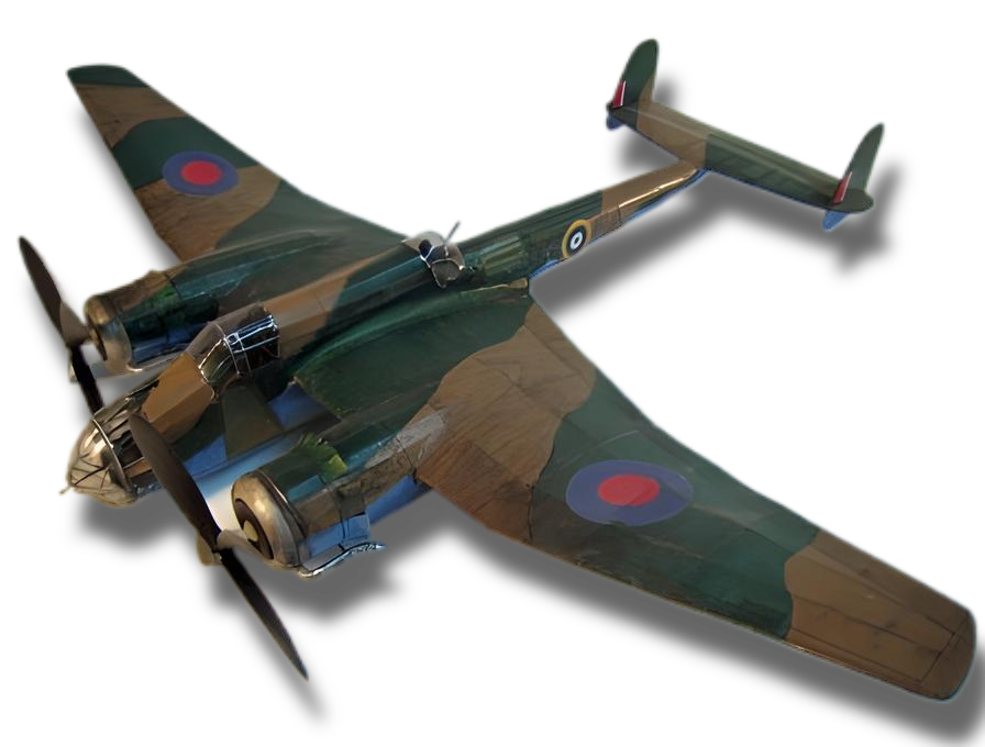 The Handley-Page Hampden bomber was used by the Royal Air Force from 1937 until early 1943. It was one of four twin-engine bombers in service with the RAF at the start of WWII together with the Bristol Blenheim, the Armstrong-Whitworth Whitley, and the Vickers Wellington. The Hampden, Whitley, and Wellington in particular were used during the early stages of the war to drop bombs on targets in Germany in raids of increasing intensity throughout 1940 and 1941 in response to German bombing raids on British towns and cities. They were all much lighter than the four-engine 'heavies' such as the British Stirling, Halifax and Lancaster and American Liberator and Flying Fortress bombers that largely took over from 1942, of course carrying much heavier bomb loads until the end of the War. Thanks to Paul Elkin for this historical information. His father worked for Boulton Paul Aircraft in Wolverhampton, England from 1936 until 1946.