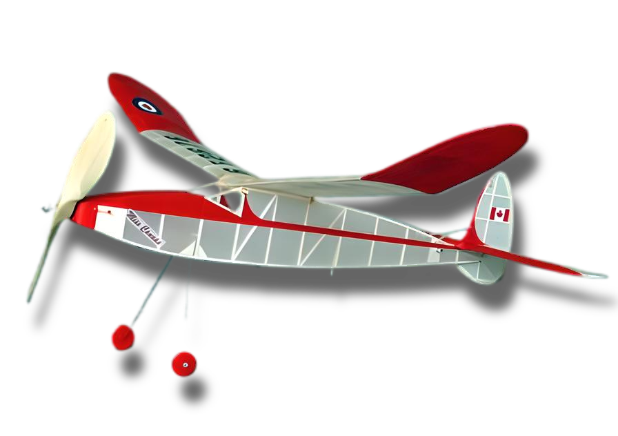 Miss Canada Sr with a 36” wingspan is now laser cut. This kit originated before 1942 making it SAM qualified for Old Time Fuselage. We’ve upgraded this kit substantially from its past. It now includes a full-size cad drawn plan that is rolled up, no folds, no cutting and taping together for this big plane. Plenty of diagrams to show details of construction. Lots of laser-cut parts are laid out on sheets in a manner to ensure the best wood weight selection. Updated to today’s construction techniques for the rear motor peg and removable nose block. Big 12” plastic prop and FAI SuperSport rubber. A complete kit has all the construction materials to build this plane including crystal clear PETG plastic, strip wood classified by wood density, plastic wheels, music wire, dowels for making a removable wing, and Easy Built Lite Tissue.