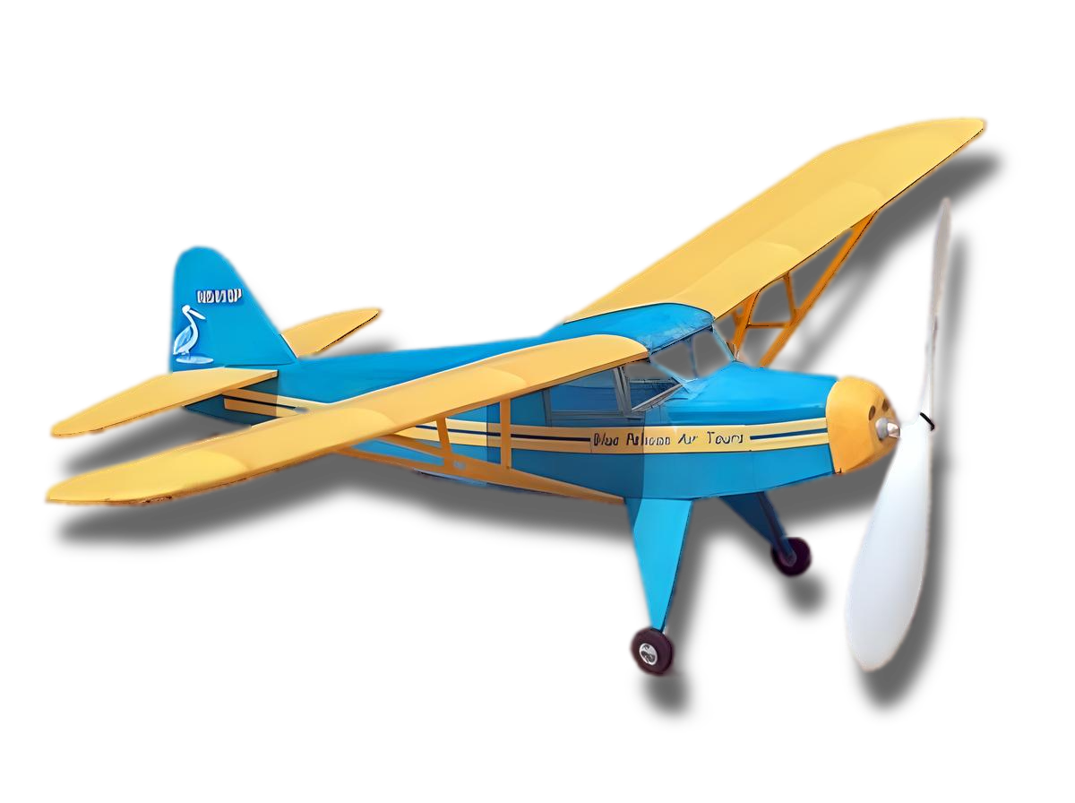 This free flight rubber powered kit contains a full-size CAD drawn rolled plan, laser cut balsa parts and hand-picked balsa stripwood, rubber motor, E-B propeller, EBM thrust bearing, clear plastic for the windshield, wheels, wire, and Easy Built Lite tissue in cub yellow. To build this model you will need a building board, hobby knife, fine sandpaper, and glue.