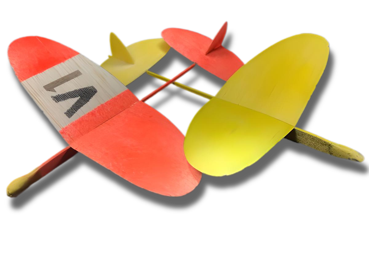 This catapult glider kit includes a full-size CAD drawn rolled plan, 2 sets of laser cut balsa parts, FAI SuperSport rubber motor, and wood dowel handle for catapult. To build this glider you will need a fine sandpaper, building board set, glue, and moldable nose weight.